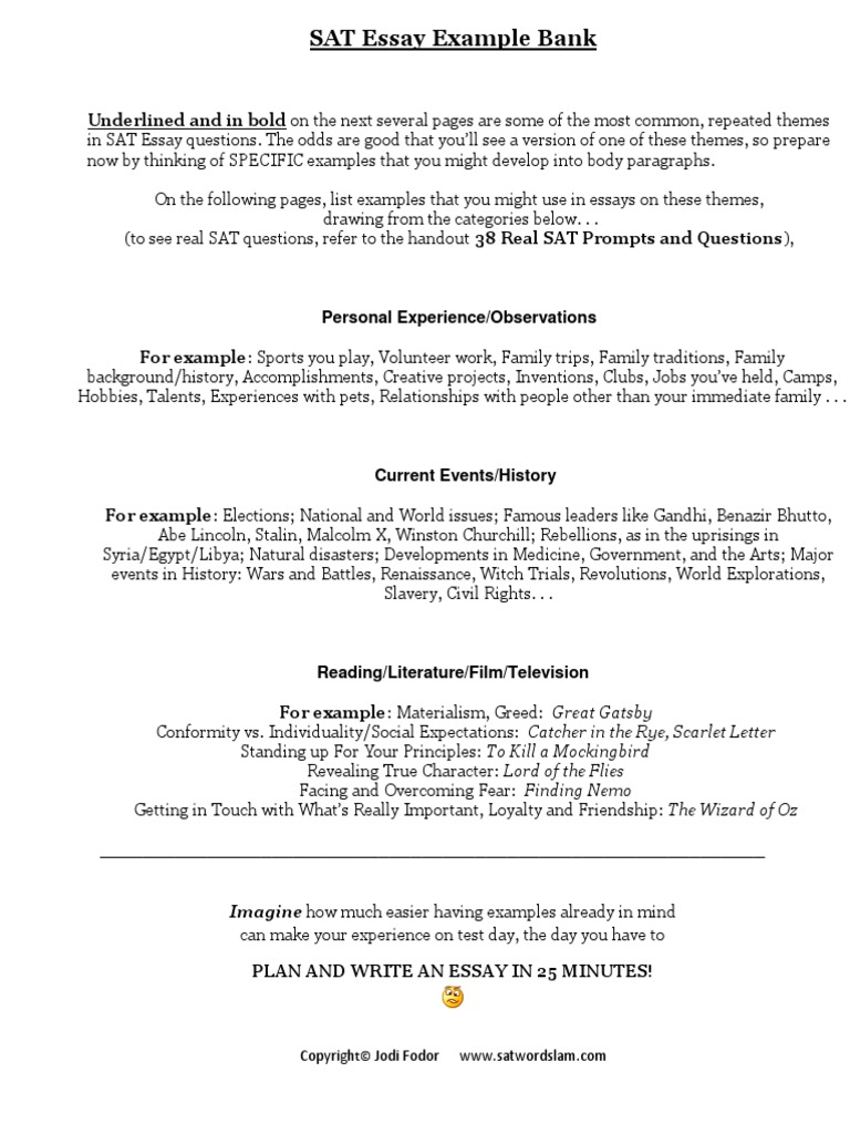 Sat Essay Example Bank Worksheet | Psychological Concepts ...