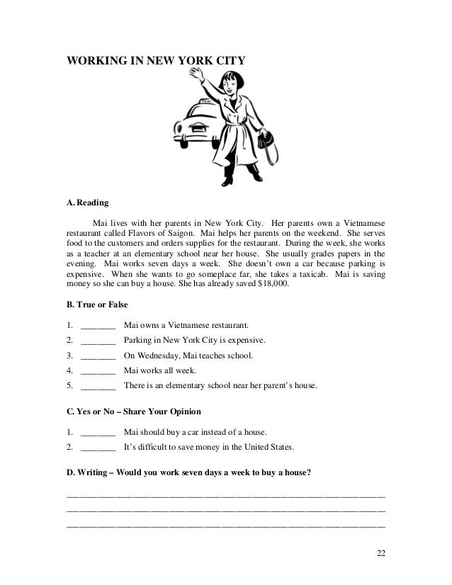ESL English Language Reading Quiz worksheets Book 1 ...
