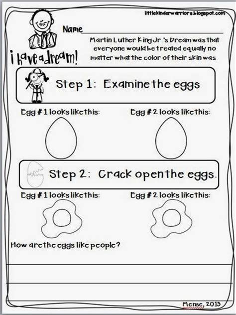 This MLK Jr. egg activity provides a great visual of being different on the outside but the same on the inside! Feel free to share your comment with us and our readers at comment form at the bottom, finally you can share this collection. Make sure kids of kindergarten learn a little about the life of.